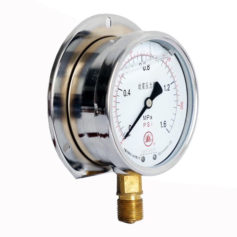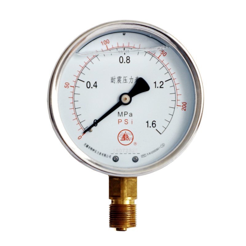 耐震壓力表是在普通壓力表的基礎(chǔ)上,表殼為全密閉型結(jié)構(gòu),內(nèi)部填充阻尼液(一般為甘油或者硅油)并加裝緩沖機構(gòu),減輕環(huán)境劇烈振動及介質(zhì)脈沖對儀表示值的影響,耐震型壓力表指示穩(wěn)定清晰。廣泛應(yīng)用于液壓機械、石油、化工、冶金、礦山機械、電力設(shè)備等部門,測量對銅和銅合金無腐蝕性介質(zhì)的壓力。使用壽命長,是普通壓力表的替代產(chǎn)品,防護等級IP65。